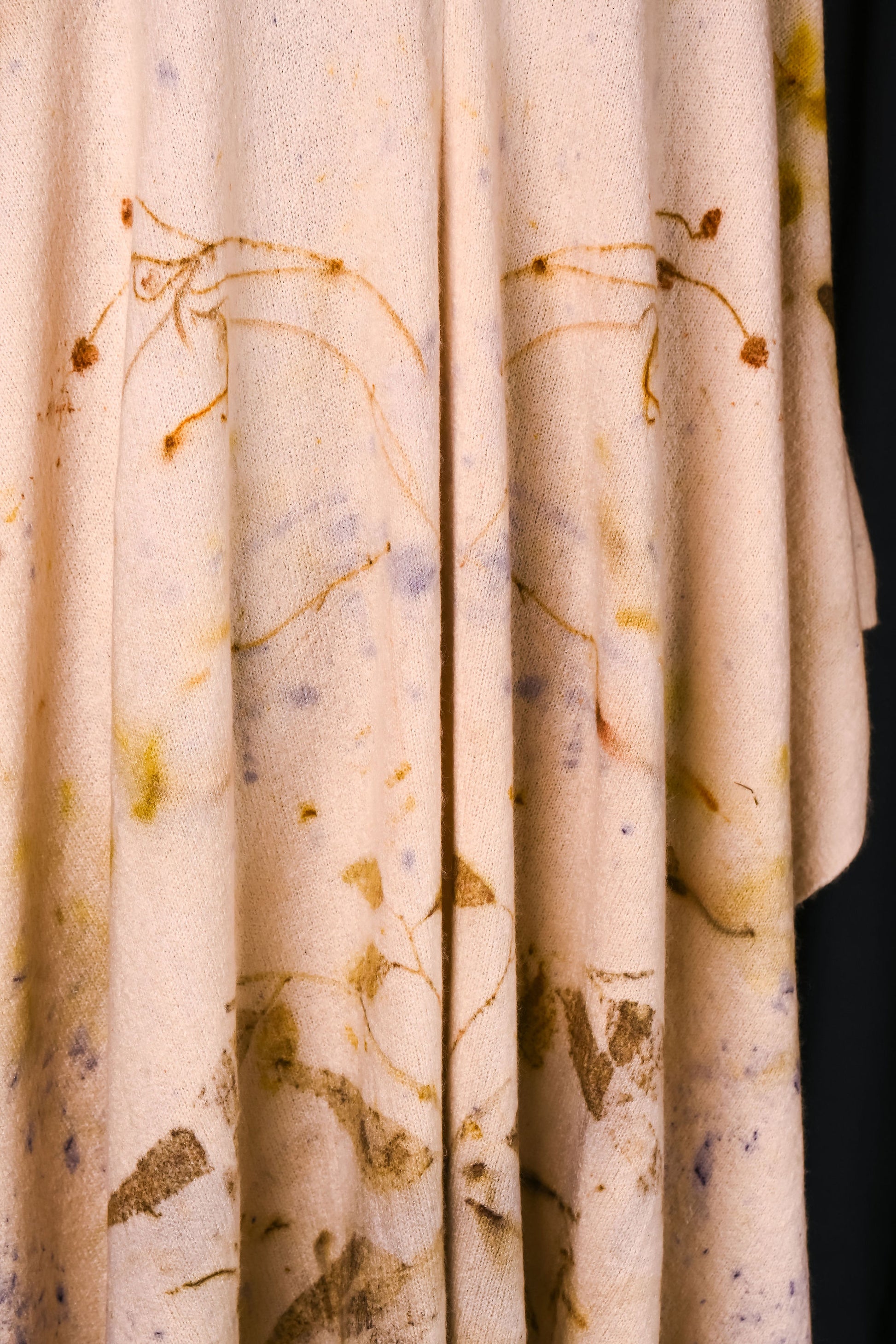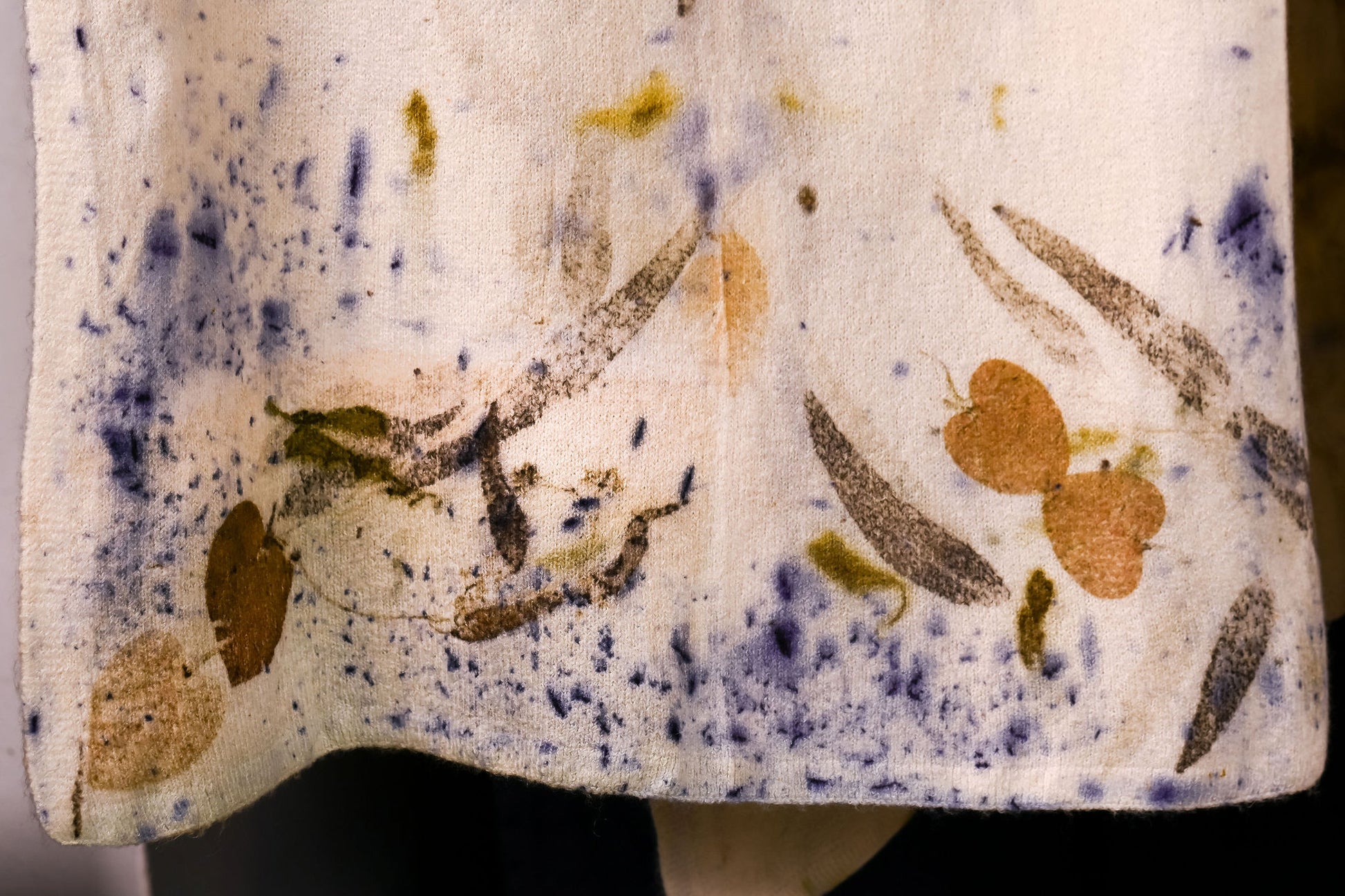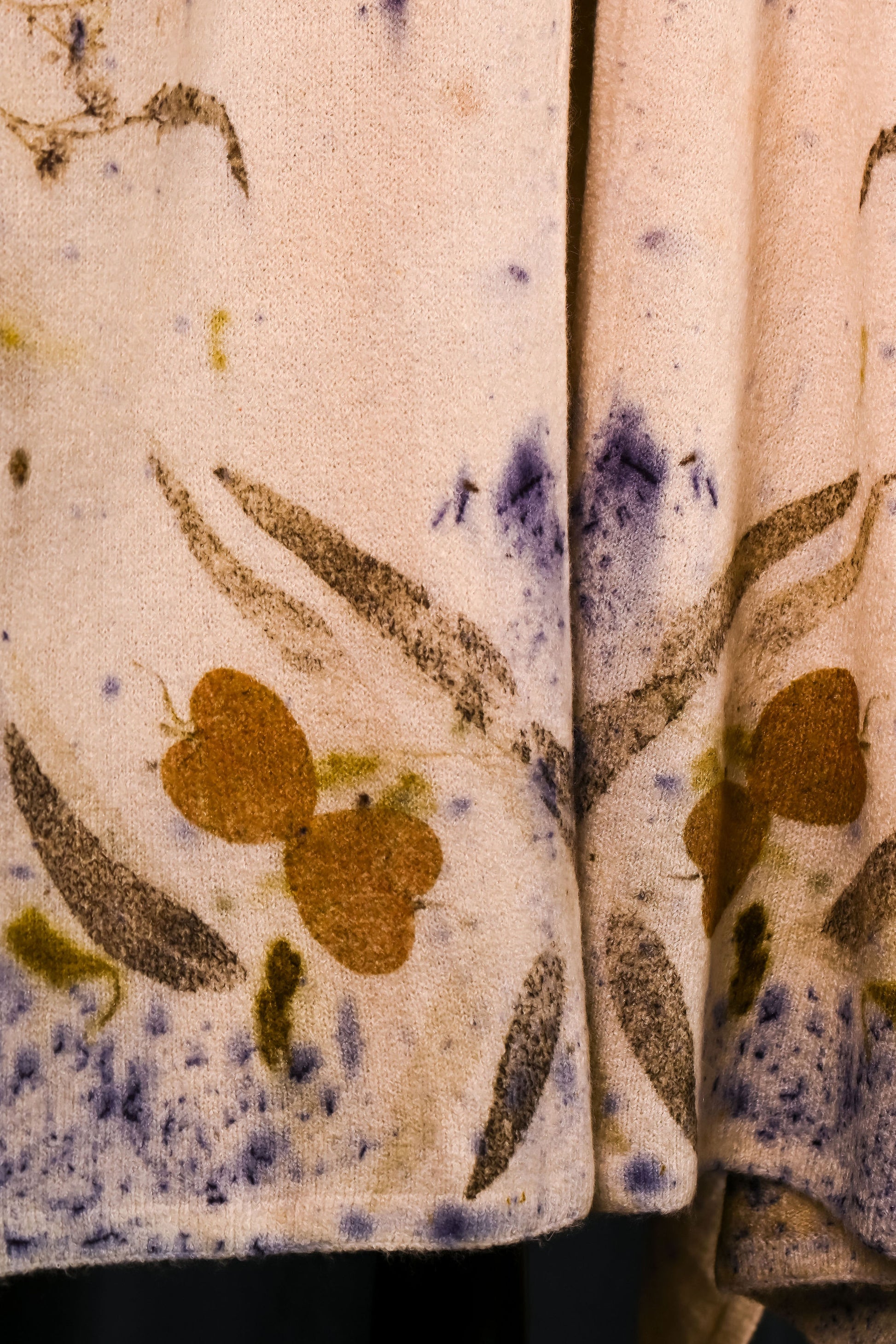 Imprimată manual cu 3 tipuri de frunze de eucalipt. Irepetabilă.