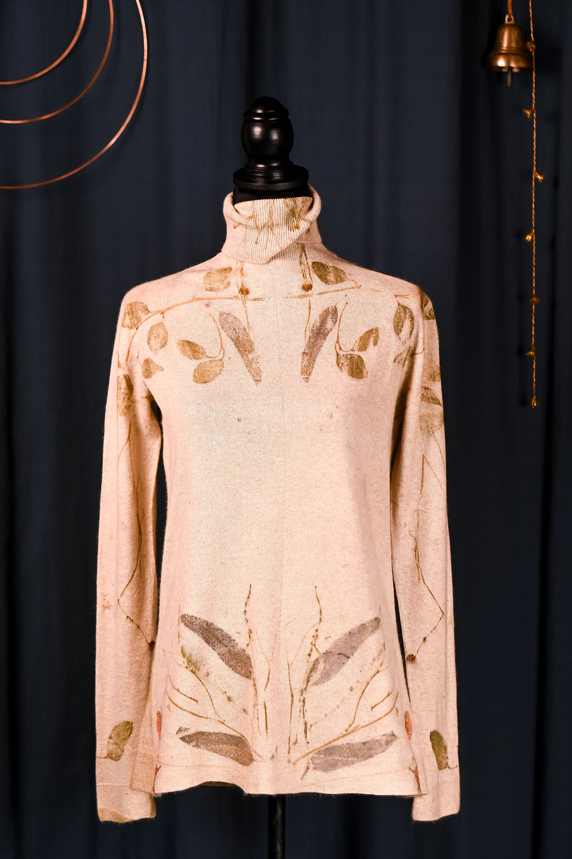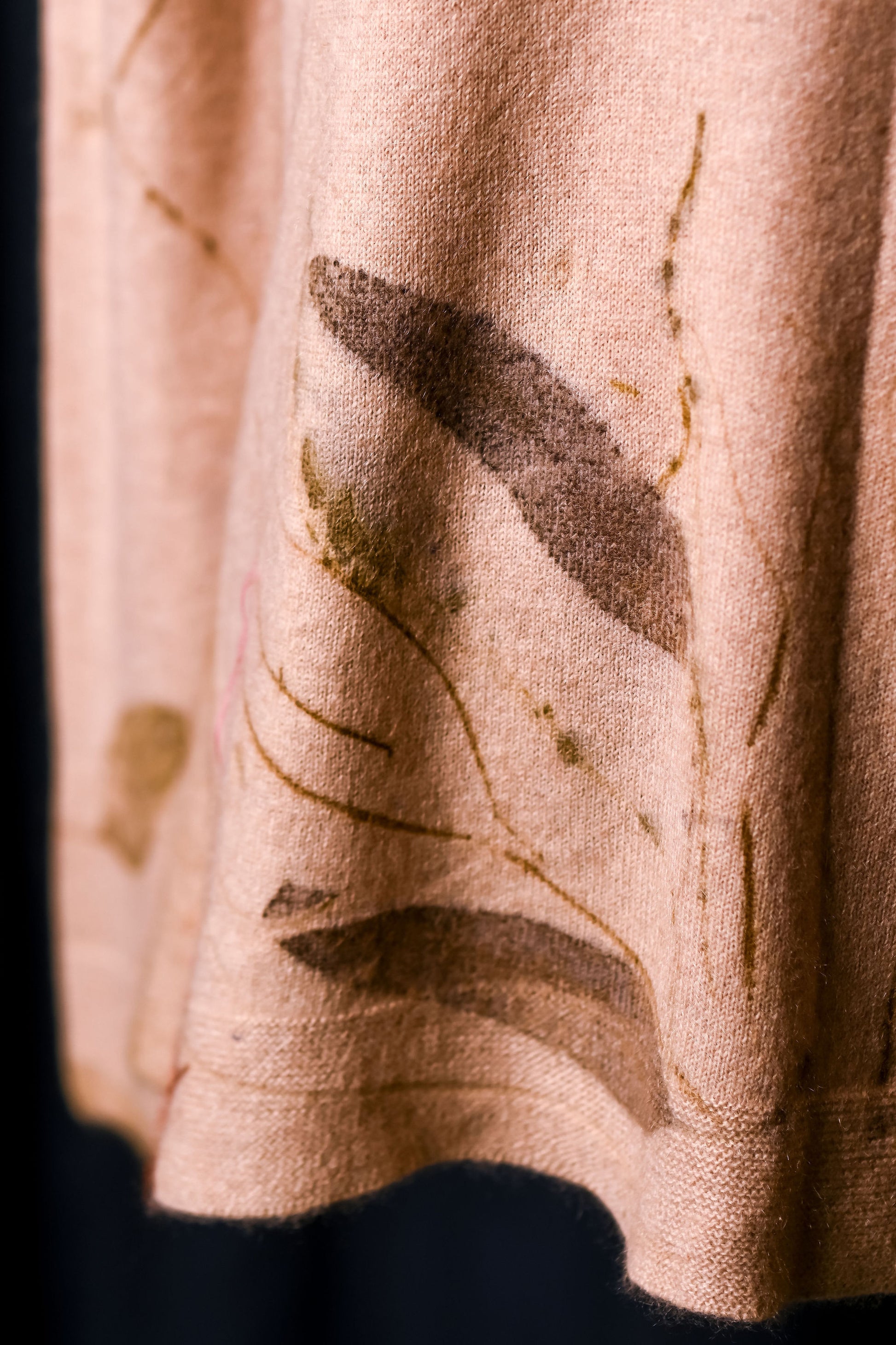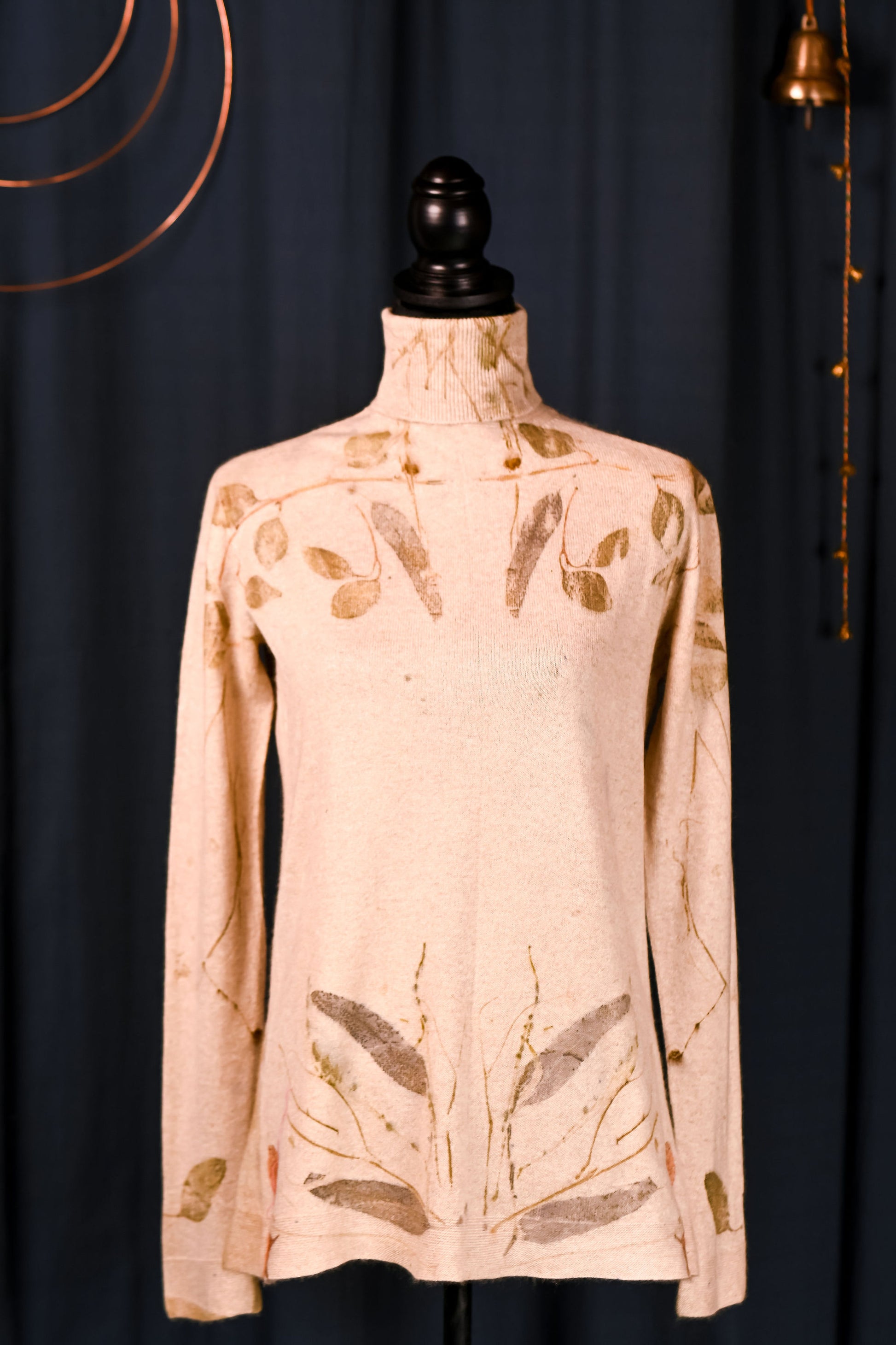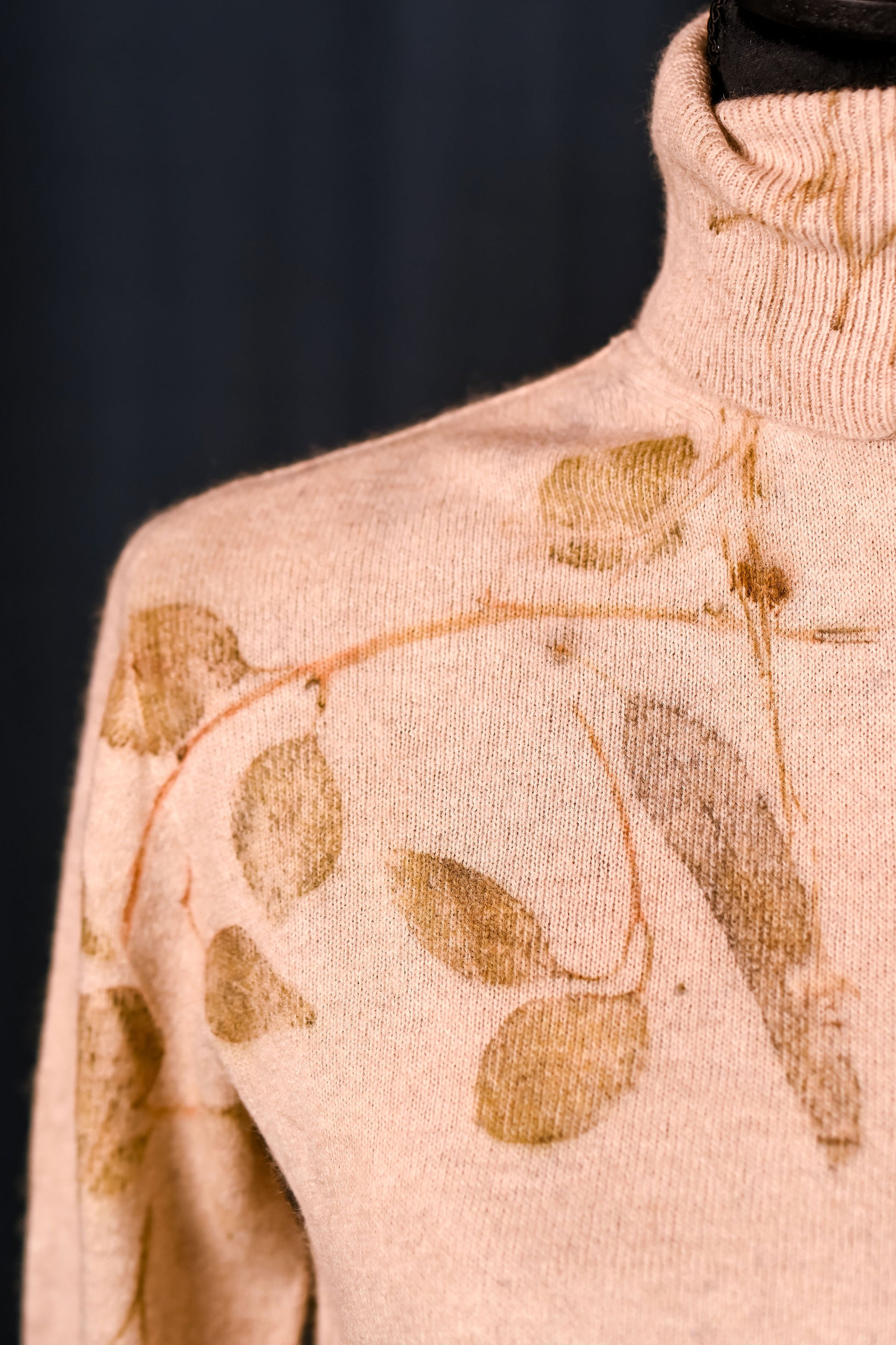 Imprimată manual cu 3 tipuri de frunze de eucalipt. Irepetabilă.
