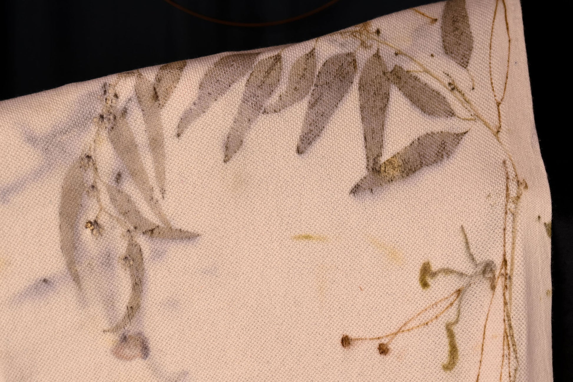 Imprimat manual cu 3 tipuri de frunze de eucalipt. Irepetabilă.