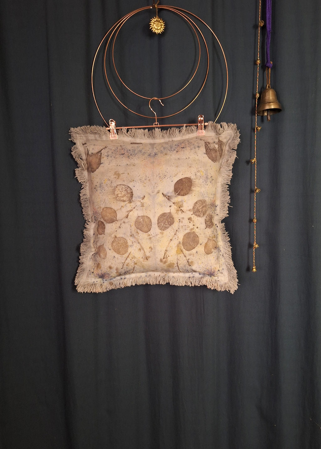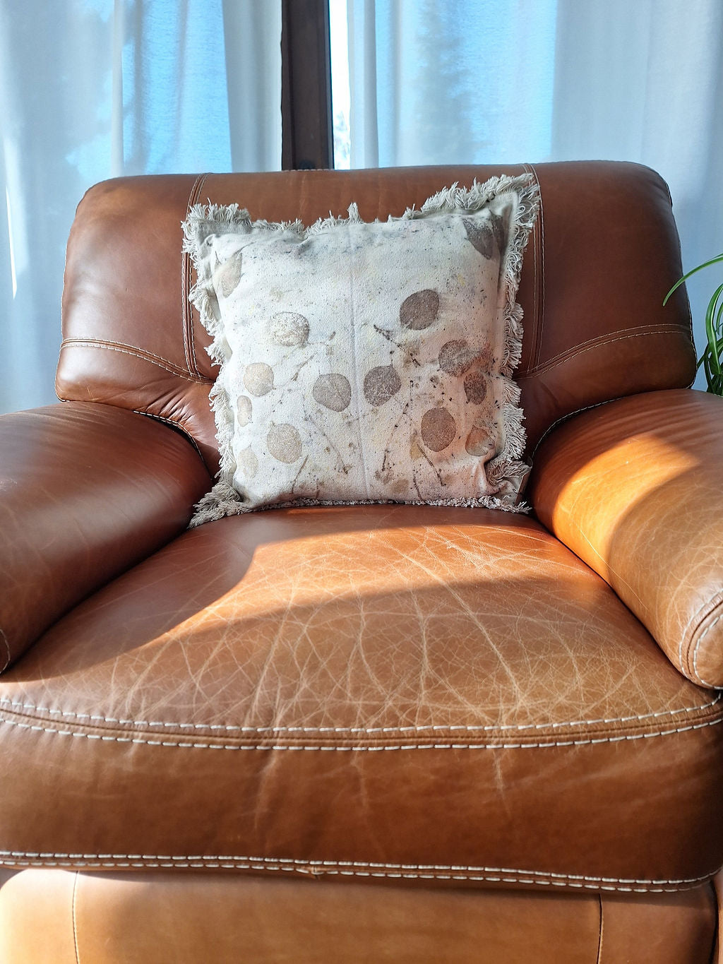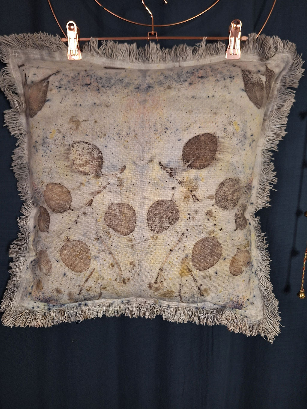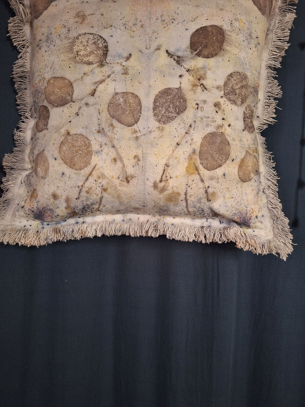 Irepetabilă. Imprimată manual cu frunze de Eucalyptus.