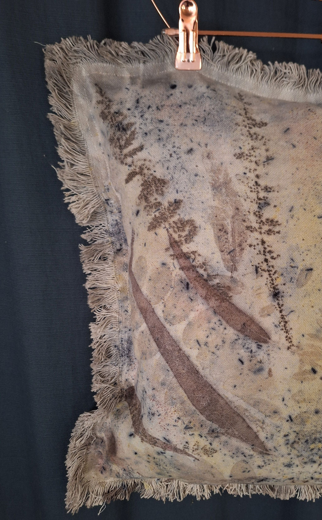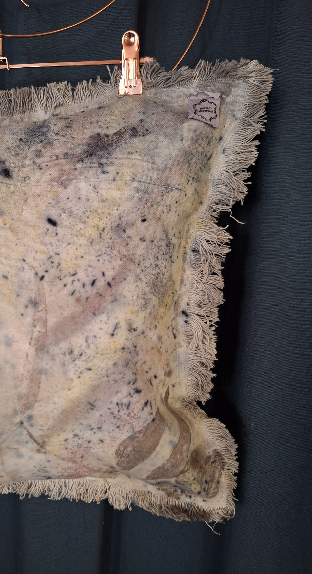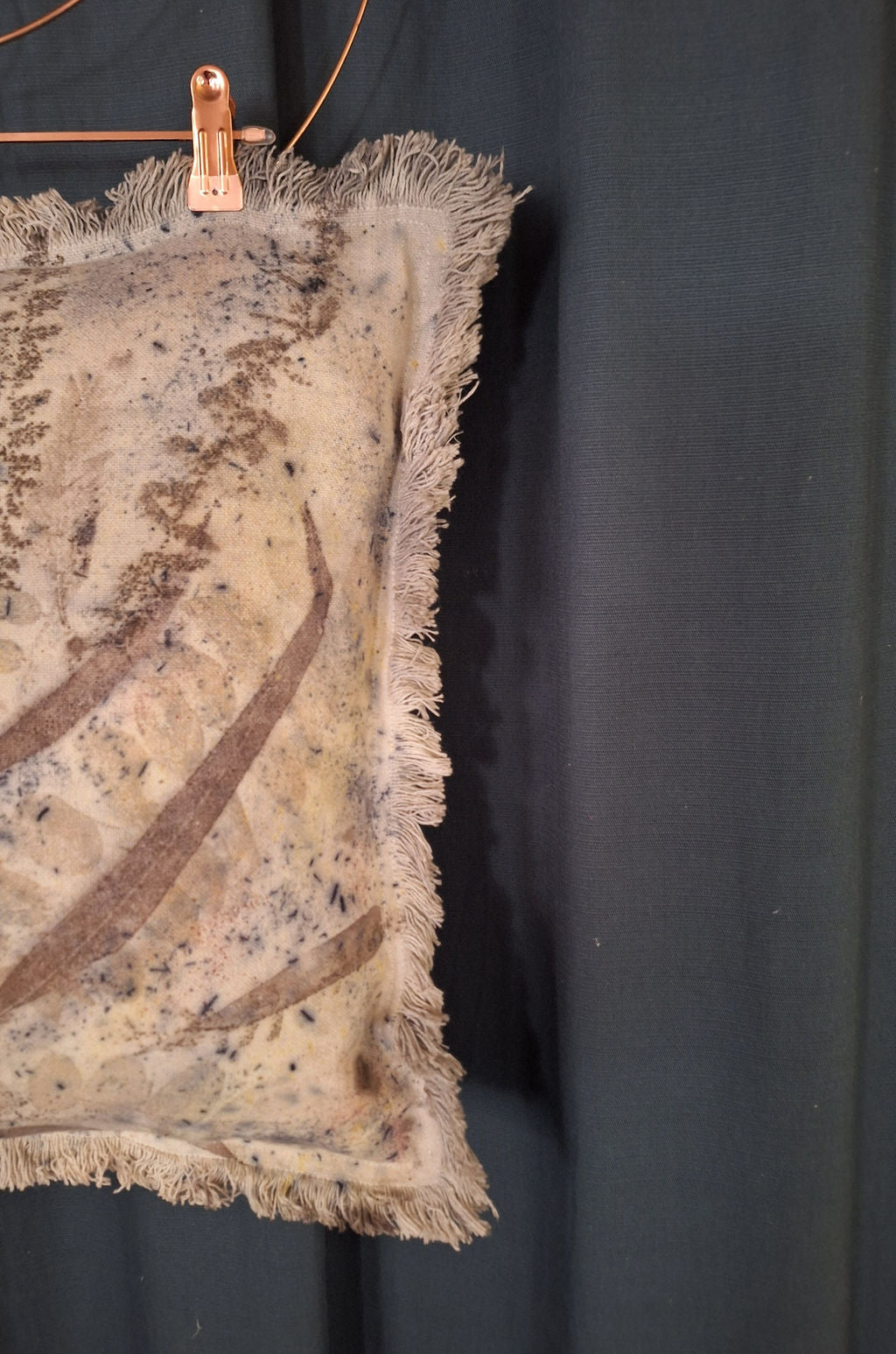 Irepetabilă. Imprimată manual cu frunze de Eucalyptus, Filipendula vulgaris, rădăcină de copac.