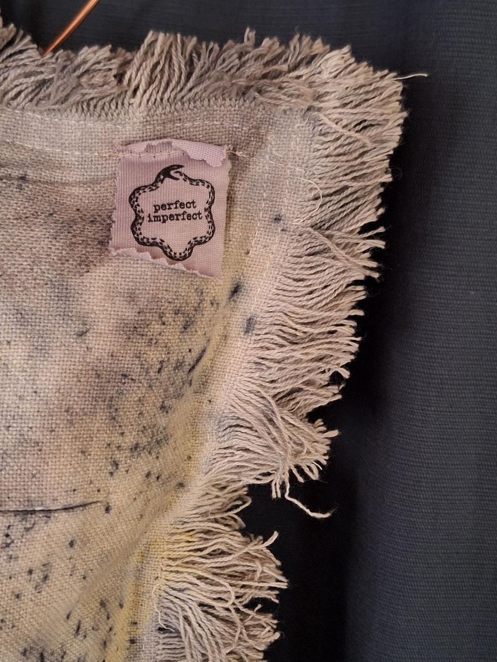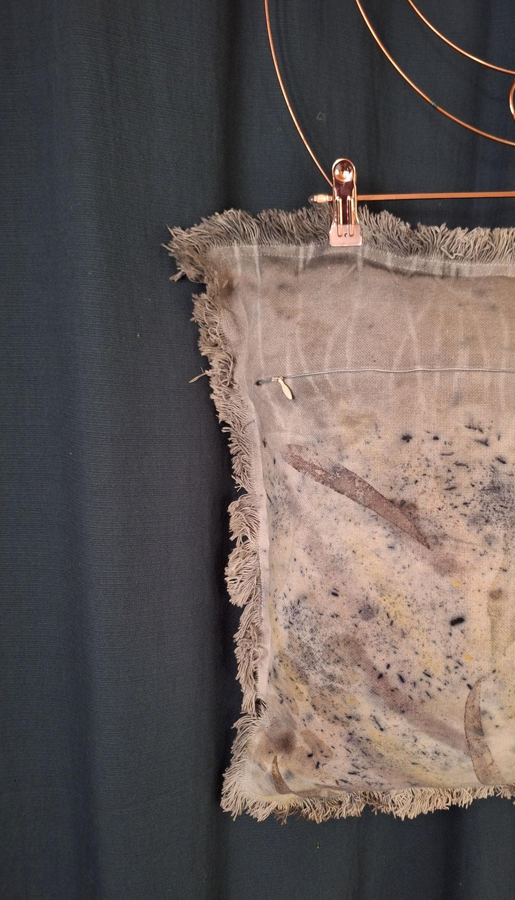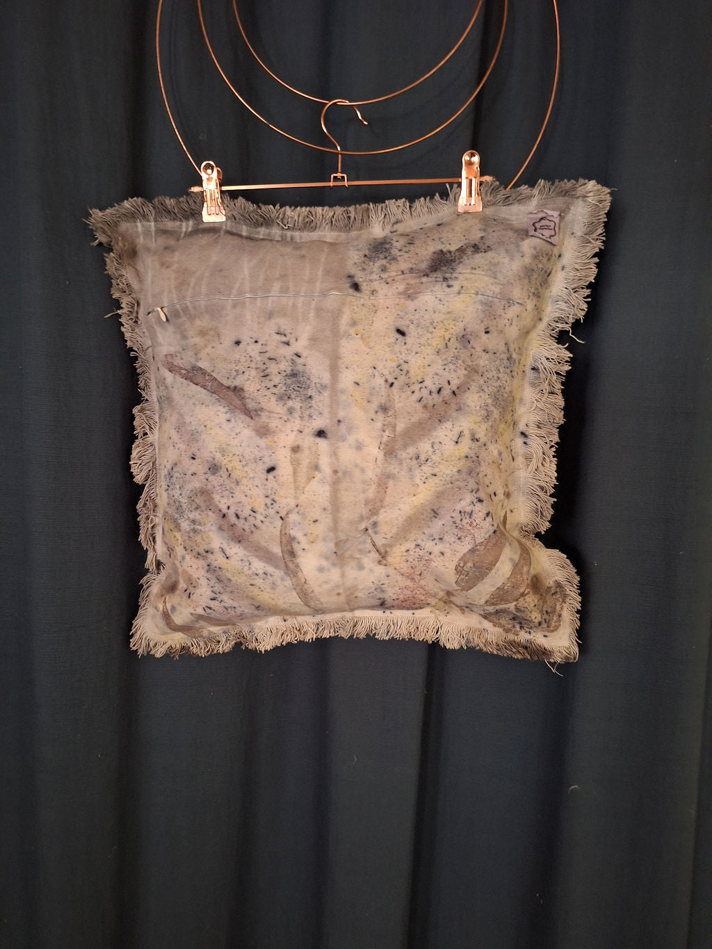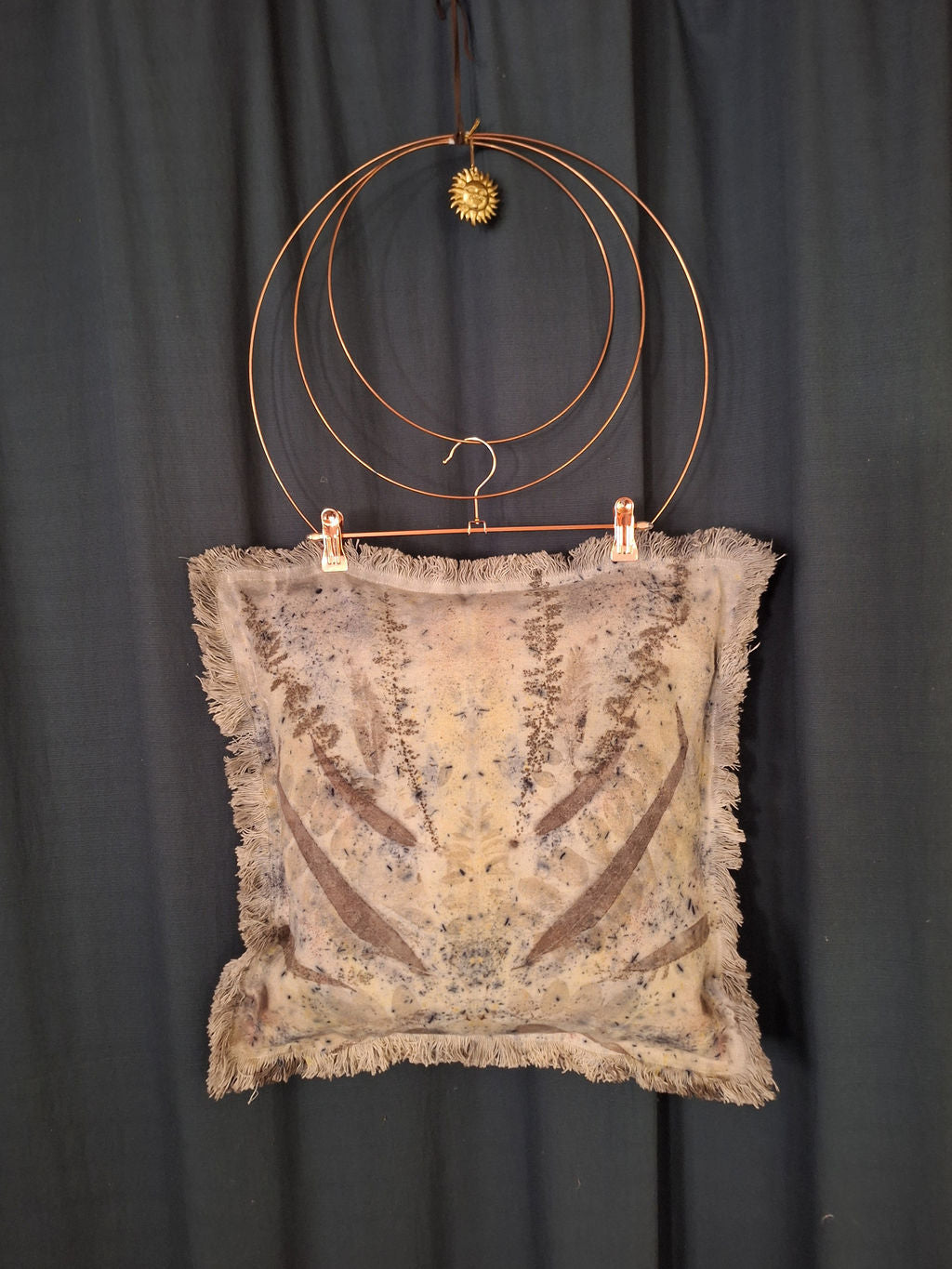 Irepetabilă. Imprimată manual cu frunze de Eucalyptus, Filipendula vulgaris, rădăcină de copac.