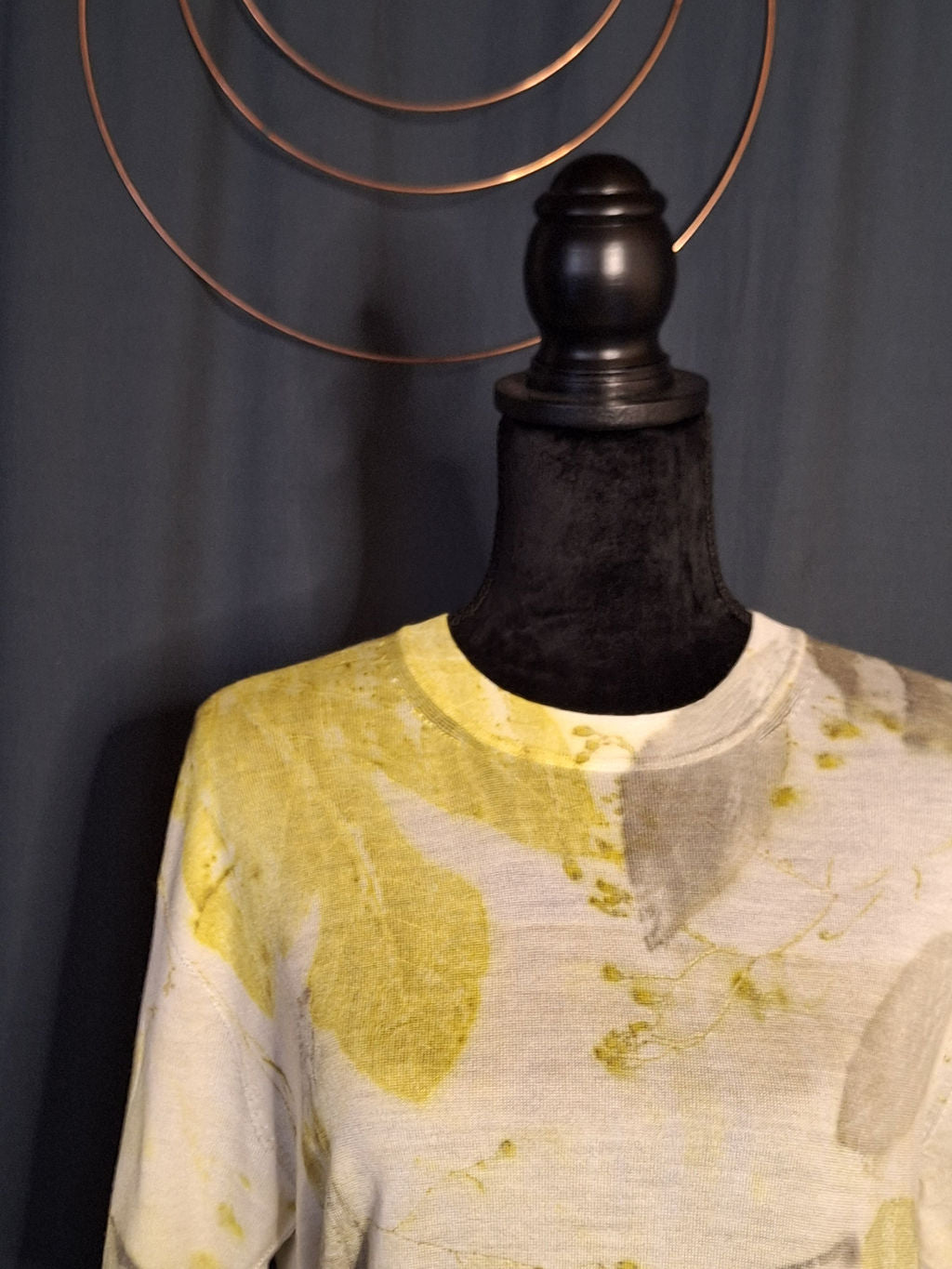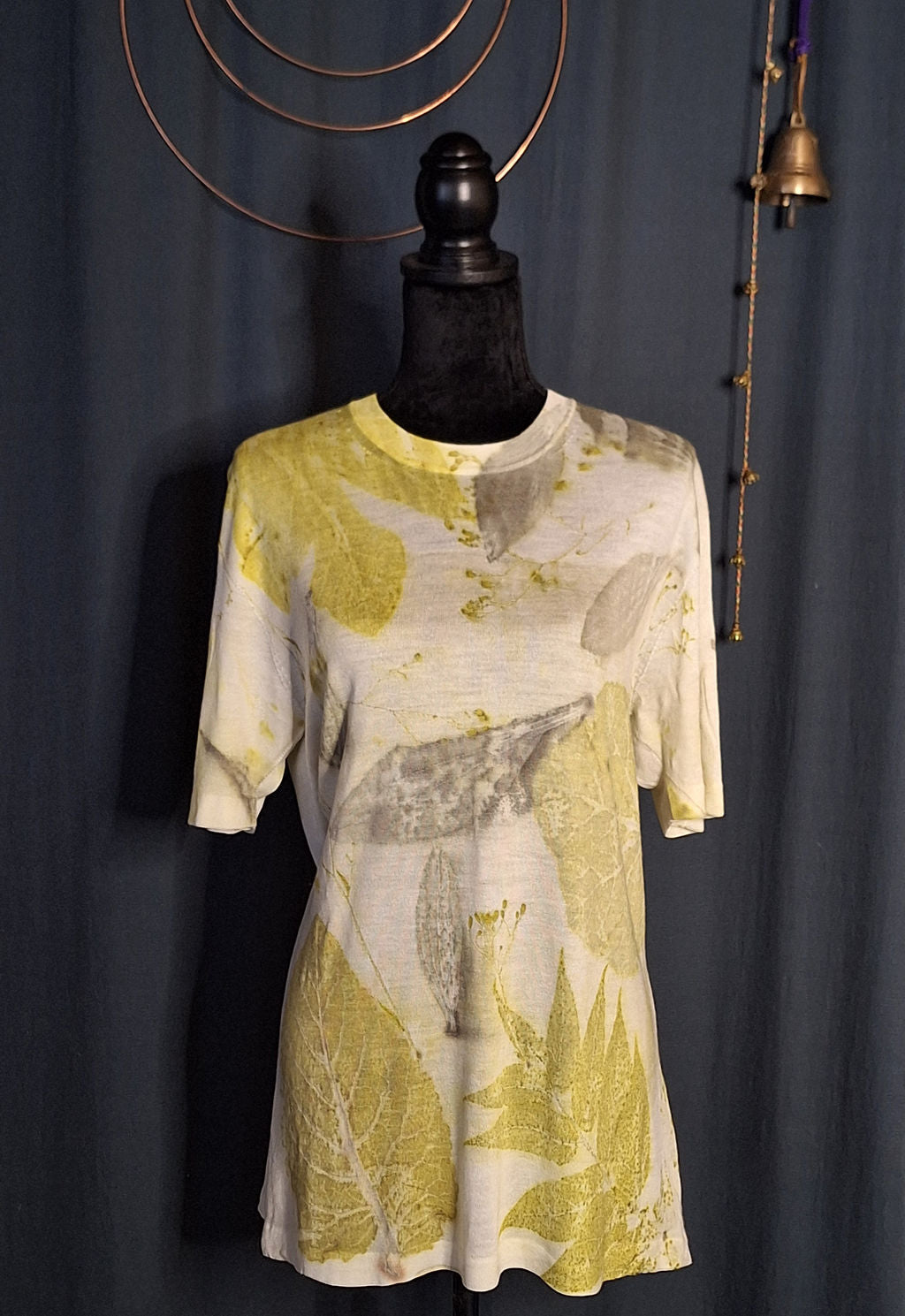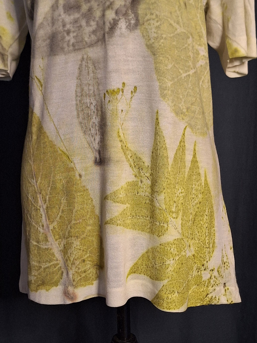 Tricou Ultra Light din lână Merino extrafină 100%. Imprimat manual cu frunze din fâneață. Țesătură 3 D - tri dimensională fără cusături.